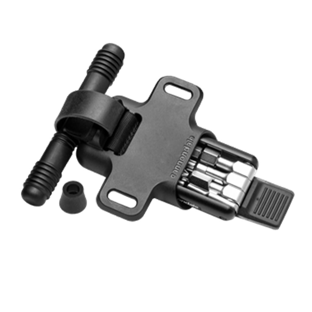 Onboard mechanic. For rapid repairs, the STASH system holds a quick-draw Cannondale 10-in-1 mini tool, CO2 inflator spacer and tire plug kit beneath the water bottle. ...More information
