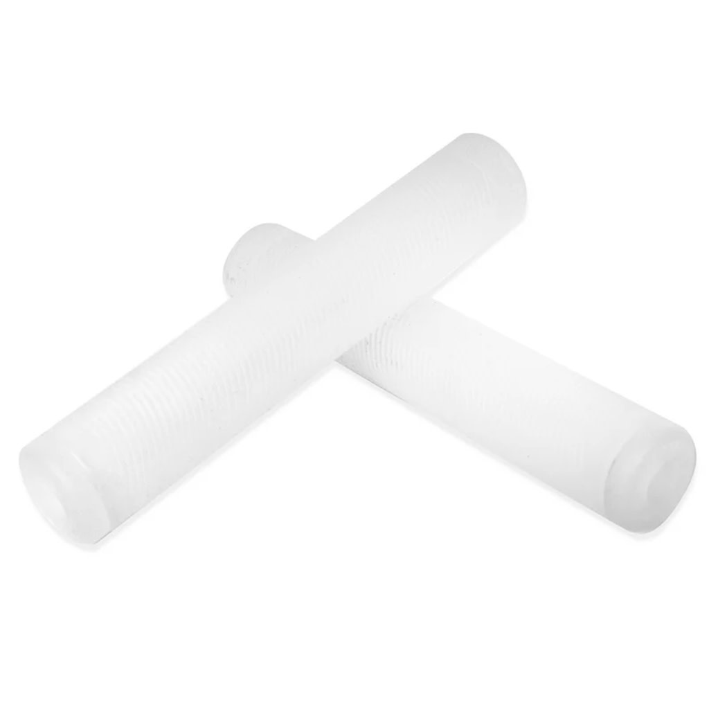 Our Riblet grips feature a newly improved compound that is stickier and longer-lasting. The Riblet BMX grip is a flangeless version of the classic mushroom style grip. Although specifically designed for BMX, the minimal sillouette and classic mushroom pattern looks great on any BMX, MTB or cruiser bike. You'll appreciate the soft touch and high performance of our revamped compound. Free Nylon Bar ends included!