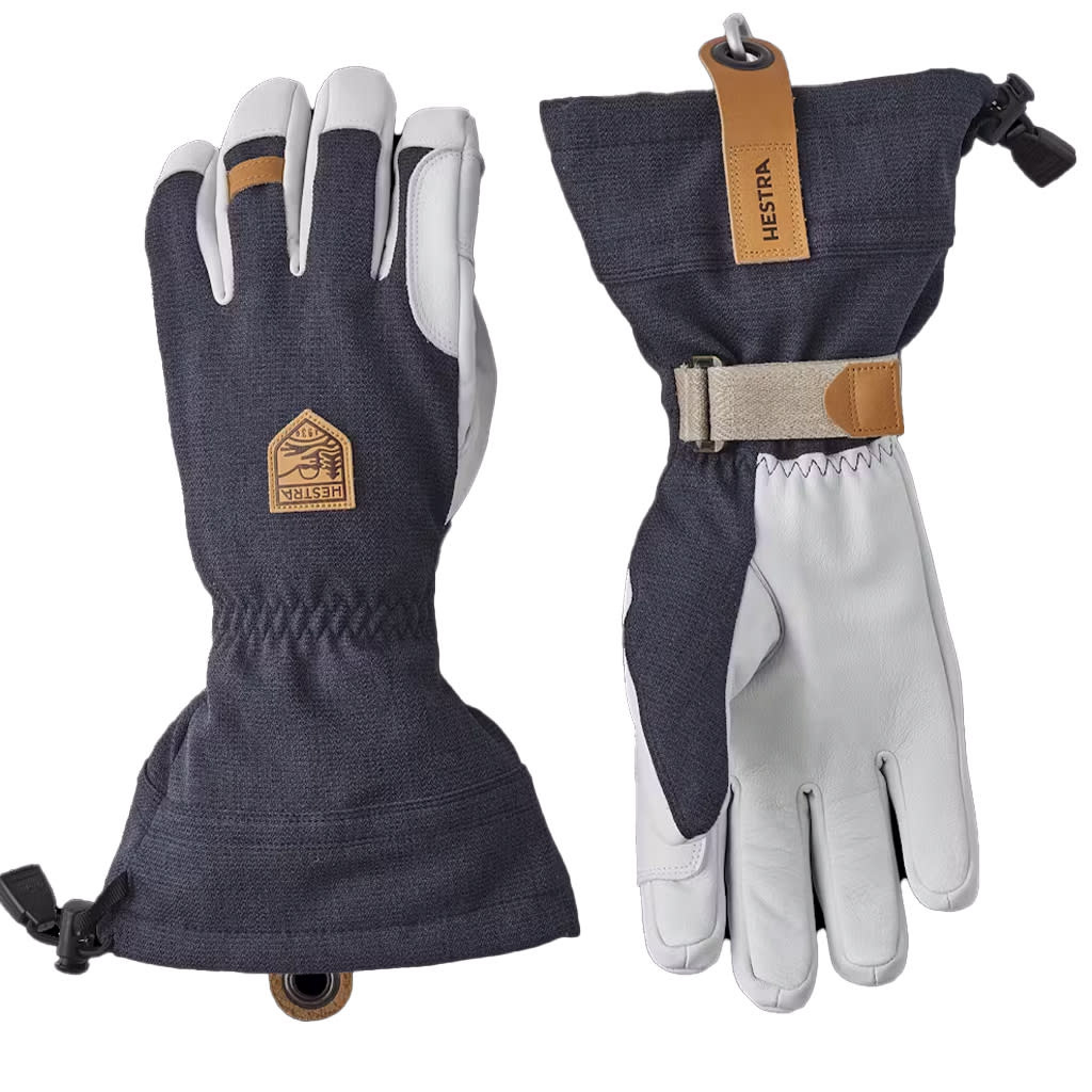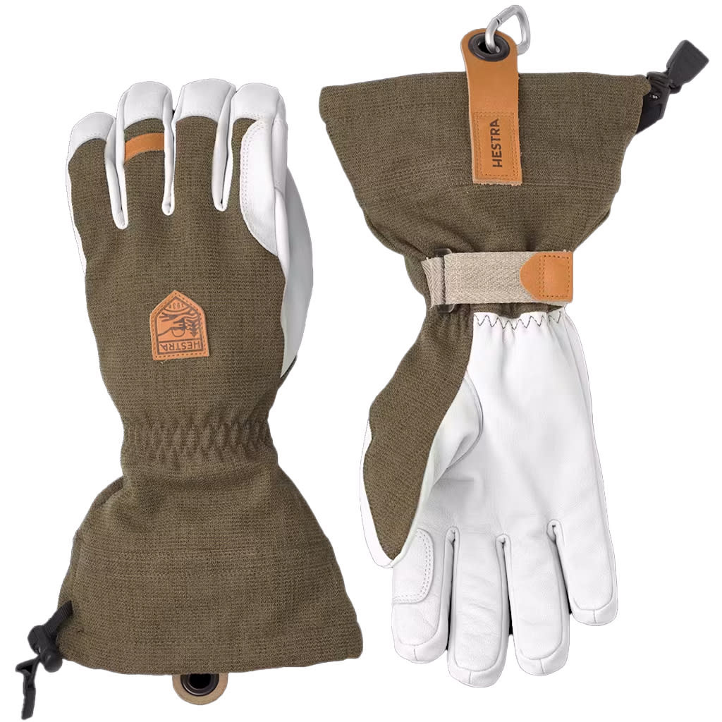 The Army Leather Patrol Gauntlet is a warm, durable ski glove for long, cold days in the snow. The palm in goatskin leather has outward-facing seams for good grip, while the backhand is in weather-resistant softshell fabric. A fleece liner with G-Loft synthetic insulation keeps fingers warm even in low temperatures, and can easily be removed to wash or dry. A number of well-thought-out details make for superb functionality on the mountain. In powder snow, you'll appreciate the high, protective cuff, while the wrist strap reduces the risk of losing a glove. A carabiner and eyelet let you hang the glove with the opening facing downwards to avoid it filling with snow if you take it off. A hardwearing, reliable companion happy to accompany you off the beaten track, away from the ski lifts and comforts of the ski resort.