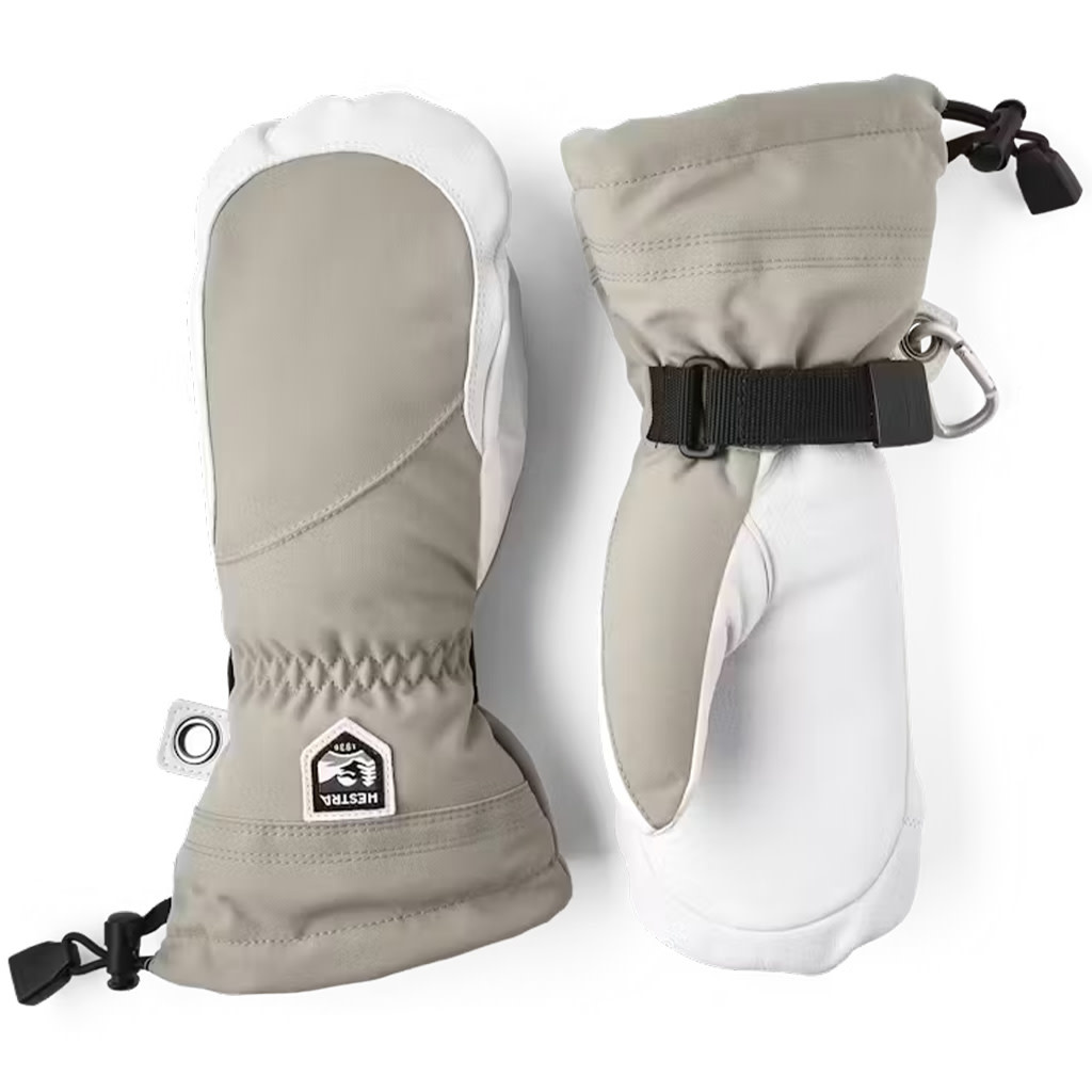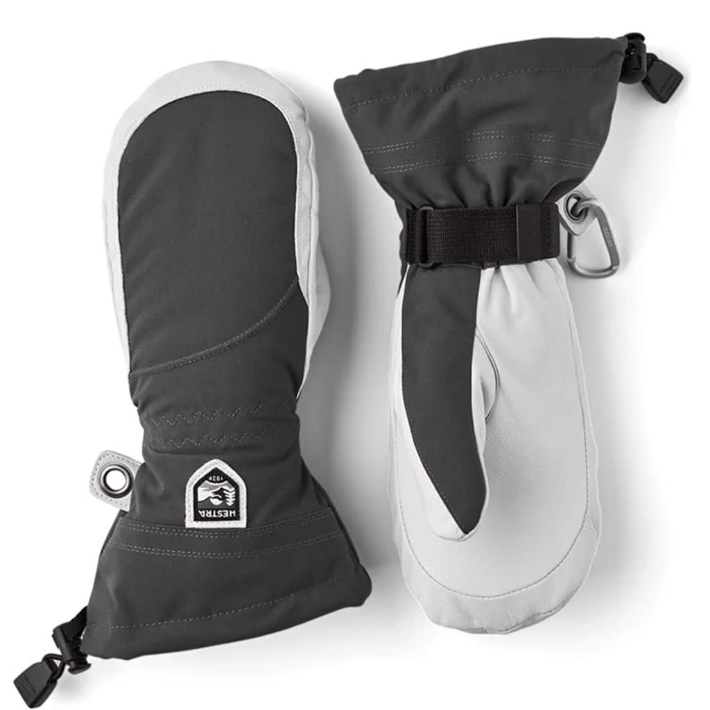 Hestra's Army Leather Heli Ski was originally created for ski guides in western Canada who needed a reliable and warm ski glove for long, cold days in the snow. This women's mitten has a narrower cut to fit women's narrower hands. Like all mitten versions, it provides plenty of space for the fingers, making it warmer than the equivalent glove. The outer glove is sewn in a hardwearing, weather-resistant combination of goatskin leather and 3-layer polyamide fabric. A range of smart functions come in handy when you can't head indoors to warm up that often. For example, the liner is easy to remove and dry, or replace with a thinner inner glove when you're being more active and hiking uphill. In powder snow, the long cuff with snowlock and wrist adjustment keep the snow on the outside and the warmth on the inside. A wrist strap reduces the risk of dropping a glove if you take it off to adjust your equipment or use your phone. And the included carabiner means you can hang the glove up with its opening facing downwards – practical while you're wearing just a thinner liner and want to avoid your gloves filling up with snow. A durable, flexible companion for skiers that spend a lot of time outdoors and who often find themselves far from the ski resort and its comforts.