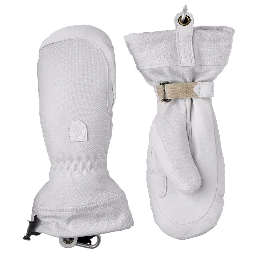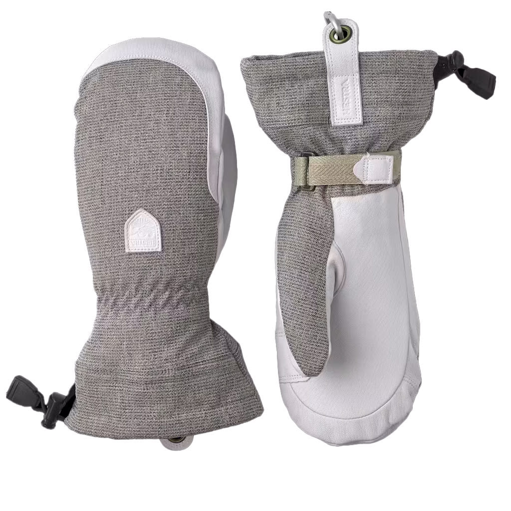 The Women's Patrol Gauntlet Mitt is designed for downhill skiers looking for a reliable companion for long days on the mountain. A mitten version, it traps more air than a glove, making it ideal if you are prone to cold fingers. Sewn in a hardwearing, weather-resistant outer material – Hestra's classic Army Leather and softshell fabric – and featuring well-thought-out functions. The removable liner contains warm synthetic insulation and can be detached to wash or dry. The liner can also be replaced with another, thinner liner if you are out ski touring, for example, and get too hot on the upward route. The cut is slightly slimmer to fit a woman's narrower hand, and the fingers are curved for better grip. A wrist strap helps you keep control of the gloves and a carabiner lets you fasten them to your jacket, for example, when you're taking a break