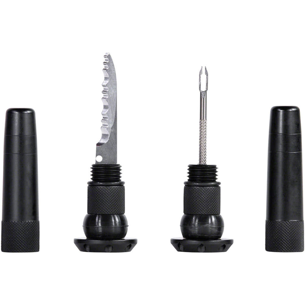 - Kit includes: (1) Stainless steel 2-in-1puncture plug/reamer tool, (1) knife trimming tool, (5ea) thin, medium, and thick tire plug worms