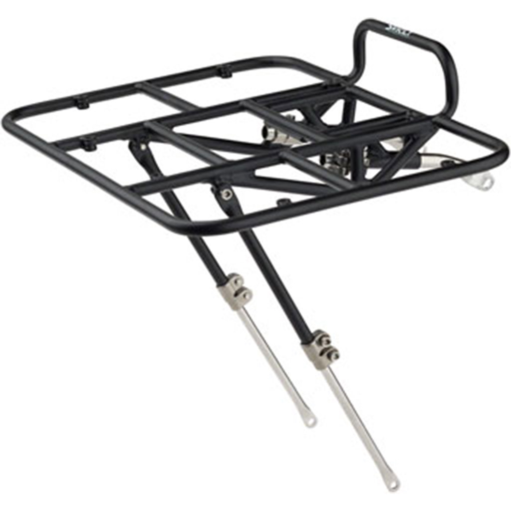 A traditional-style Porteur rack that mounts securely to mid-blade and crown eyelets of Surly forks, making it compatible with fat bike and 29+ wheels.